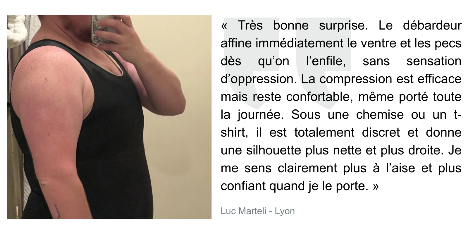 Oui, c'est d'ailleurs ce qui fait le succès de nos débardeurs. Nous sommes les seuls à avoir une bande de compression à la fois efficace et confortable sur des débardeurs.